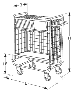 UTFÖRANDE Den lilla vagnen har fyra länkhjul 100x25 mm. Den större vagnen har fyra länkhjul 125x32 mm och fyra avvisarhjul Den lilla vagnen har en mapphylla med 10 st foliomappar och en korg. Passar bra för det lilla kontoret. Den stora vagnen har 15 st mappar och kan även kompletteras med ytterligare mappar. För paket finns en lutande hylla. Galler på tre sidor. Postutdelningsvagnarna levereras färdigmonterade. |